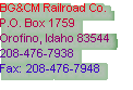 The BG&CM Railroad Company was incorporated in the State of Idaho on 23 October 2002. The local management of the railroad is currently located at the Orofino, Idaho railroad depot.