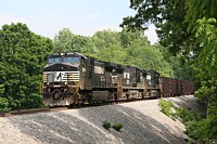 9368 leads a rock train east through Ellett in June 2009