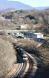 An hopper train heads west through the town of Narrows on his way to Bluefield in December 2006